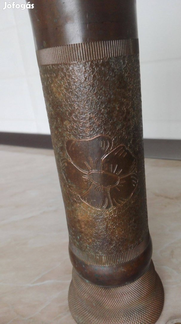 Ágyú lőszerből készült I. Világháborús virágváza ritka szép db