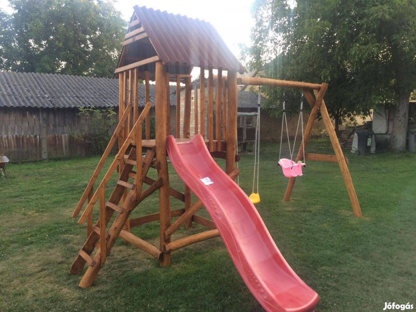 Eladásra kínálok egy új akác rönkből készűlt játszóházat! Csiszolva és festve, masszív szerkezet ami stabil lábakon áll! Egy 2.3 méteres csúszdával (számlájával) és egy hintával (számlájával) eladó! Szálítás megoldható! Keressen bizalommal! Érdeklődni ezen a számon lehet: