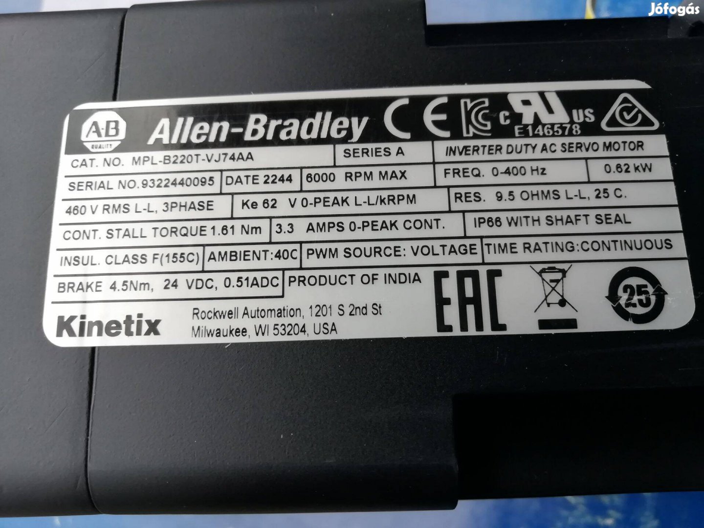 Allen Bradley szervó motor MPL-B220T-VJ74AA