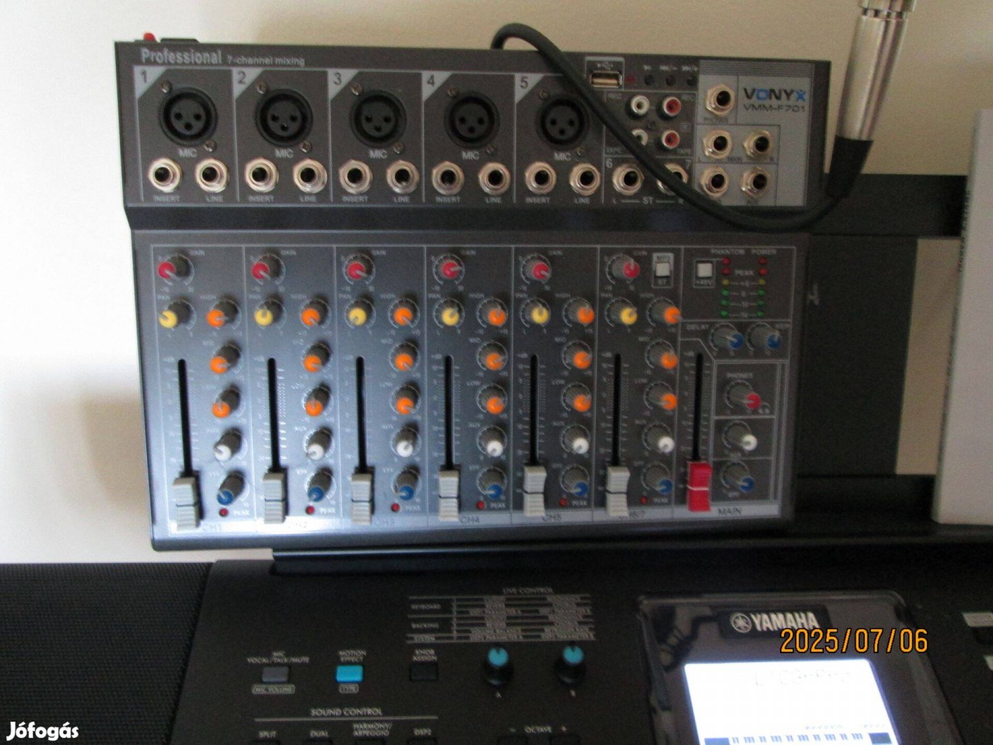 Az 5 csatornás keverő, vezetékek ,hangkártyák,kondenzátor mikrofonok, nem használtak eladók .egyben !