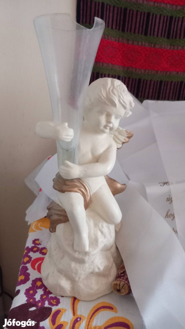 A tartó üvegből van, sajnos egy kis rész letört róla, az látszik a képen, de ki lehet venni és mással is lehet pótolni.