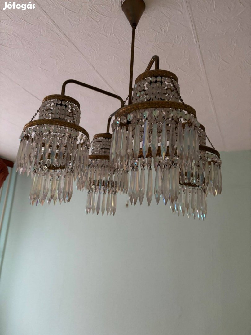Kitűnő állapotú jégcsap mintájú aranyozott cseh kristálycsillár. Négy karú.