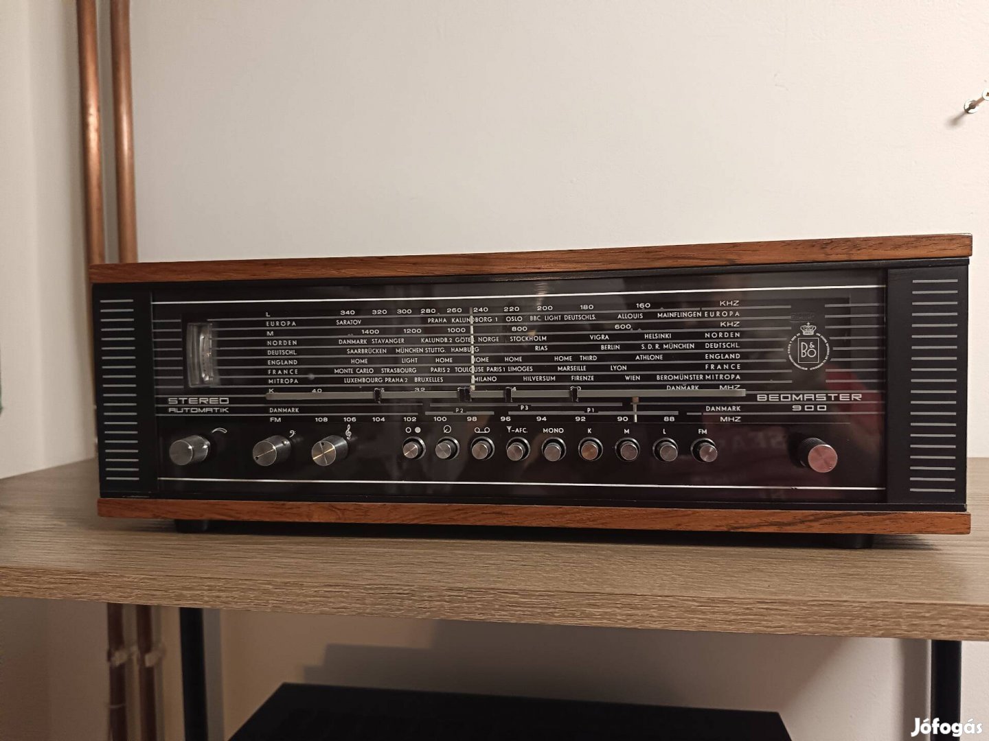 Bang&Olufsen Beomaster-900 rádióersítő, nagyon szép álapotban. Teljesen hibátlan, felújított készülék a 60-as évek közepéről. Nagyon jól működik a rádió része is, jól veszi a sztereó adásokat, igen kellemes csőszerű hangzása van, az eredeti germánium tranzisztoroknak köszönhetően. Ez a típus volt a Bang&Olufsen legelső tranzisztoros rádióersítője!