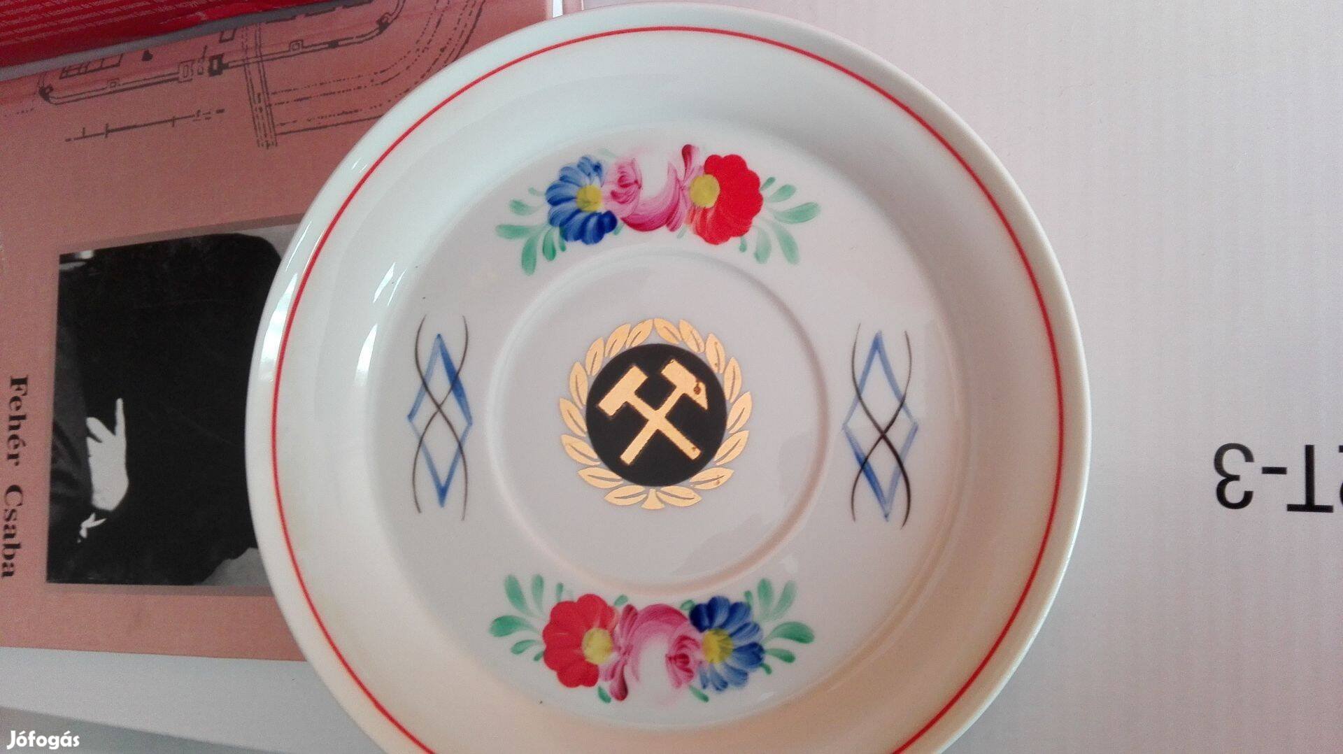 Bányász címeres aranyozott Dísztányér Régi Hollóházi porcelán
