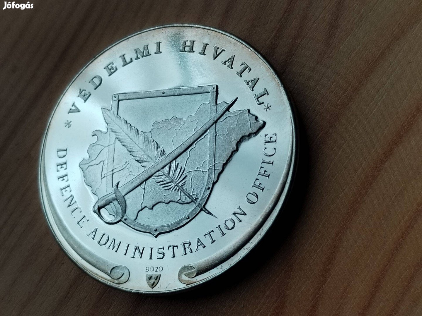 Bozó Gyula éremművész "Védelmi Hivatal" jelzett ezüstözött kitü