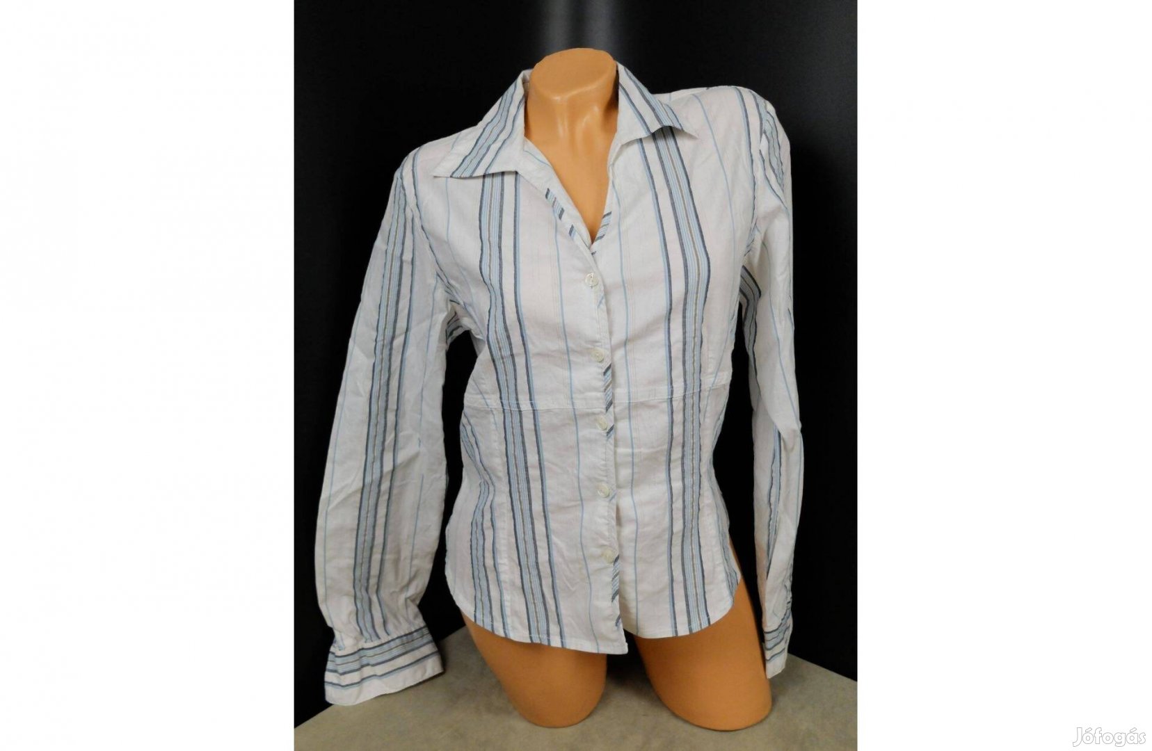 Comma fehér kék csíkos hosszú ujjú elegáns gombos női ing