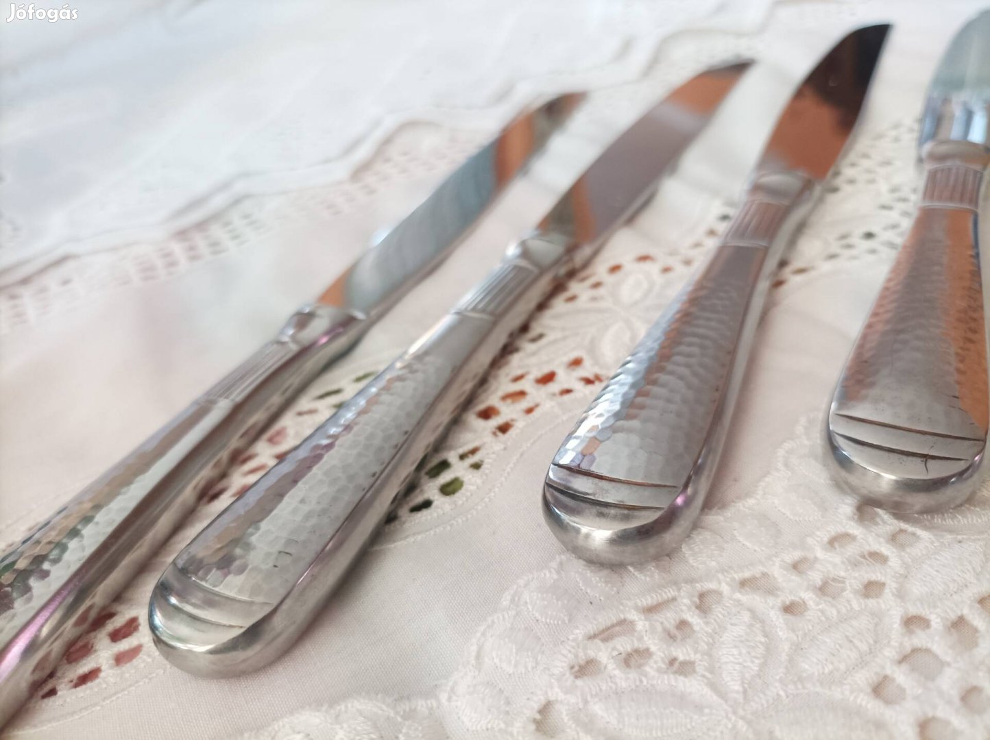 Csodaszép kalapált felületű nyéllel 6 db vintage Sola, svájci rozsdamentes kés, 26 cm