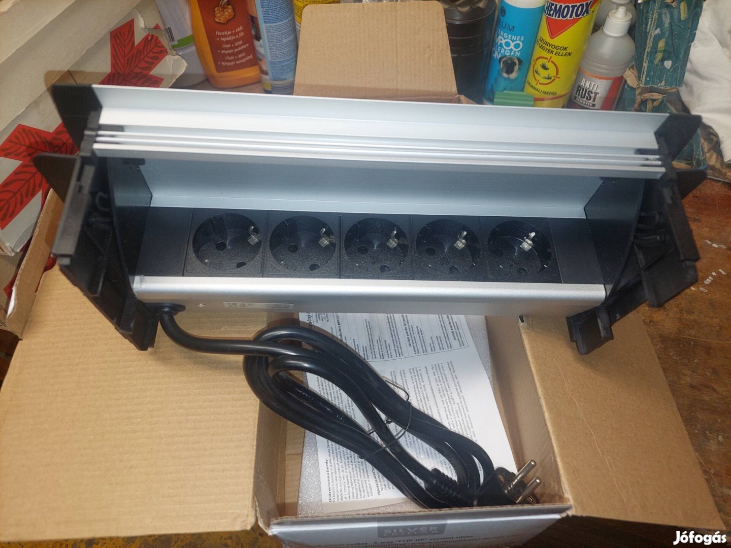Munkából megmaradt, sohasem használt, Delight 20448, süllyeszthető, 5 dugaljas, rejtett elosztó eladó! Asztalba vagy konyhai bútorlapba szerelhető!