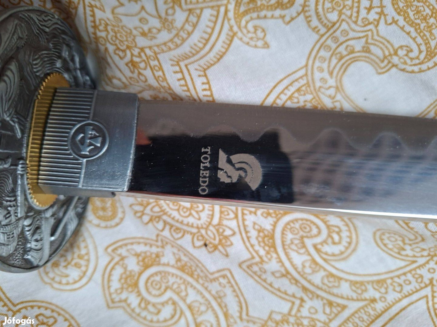 Díszkard szép új dobozban.Tiledo feliratos penge.Fa tok saya, fonott markolat.