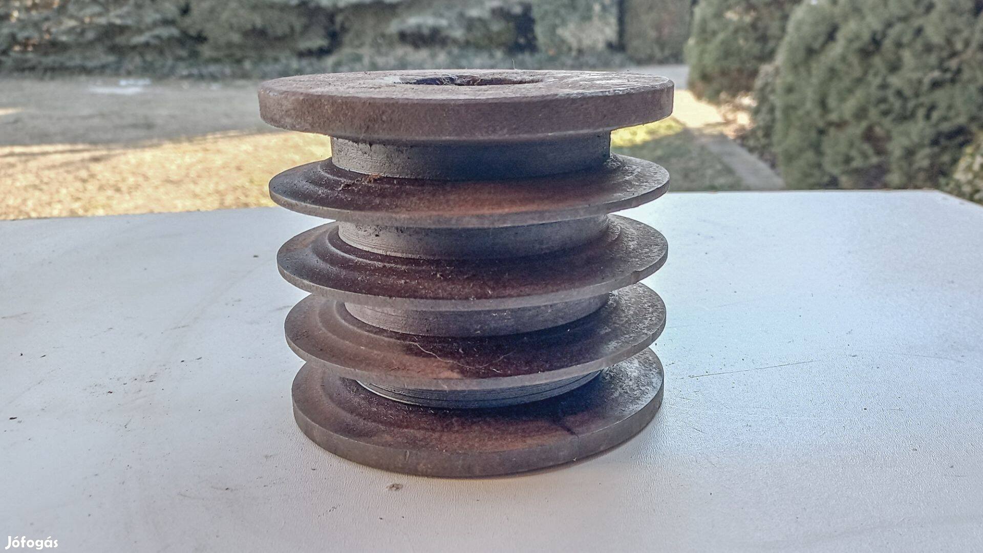 4 pályás szíjtárcsa, átmérő 130 mm, szélesség 110 mm, tengely furat 42 mm, ékpálya 10 mm, szíjméret 20 mm.