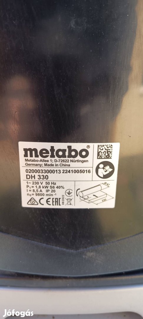 Eladó a képeken látható Metabo dh330 vastagoló gyalugép megkímélt állapotban. Hobbi célra használtam. 2 szett gyalukéssel adom. Az egyik teljesen új, a másikat élezni kell. Azért adom el mert vettem egy kombinált gyalugépet, így már nincs szükségem erre.