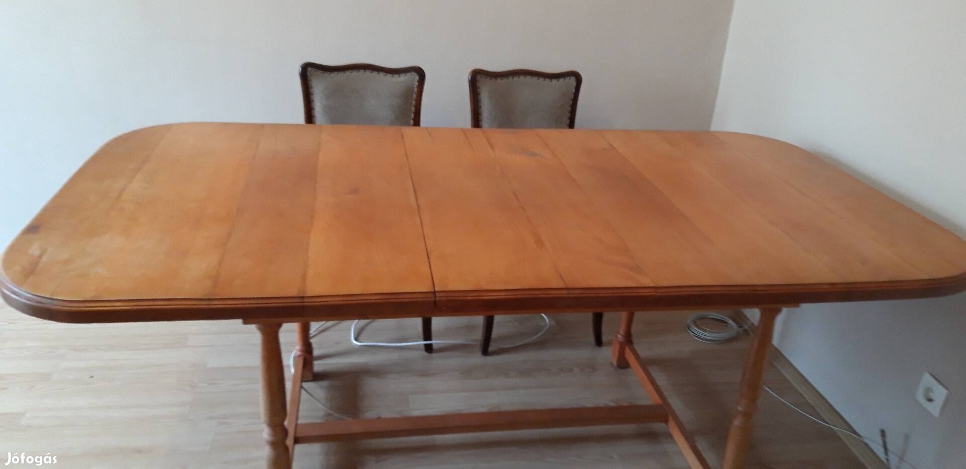 Eladó!! Nagyméretű ebédlőasztal 4db felújított párnázott székkel.