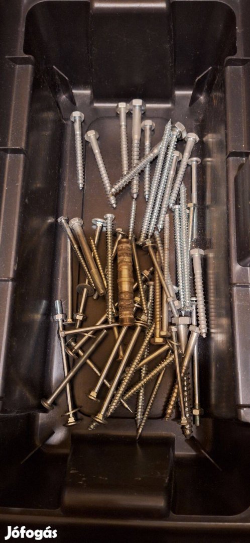Eladó a képen látható állapotban csavarok anyák alátétek tiplik vegyesen műanyag ládával együtt.