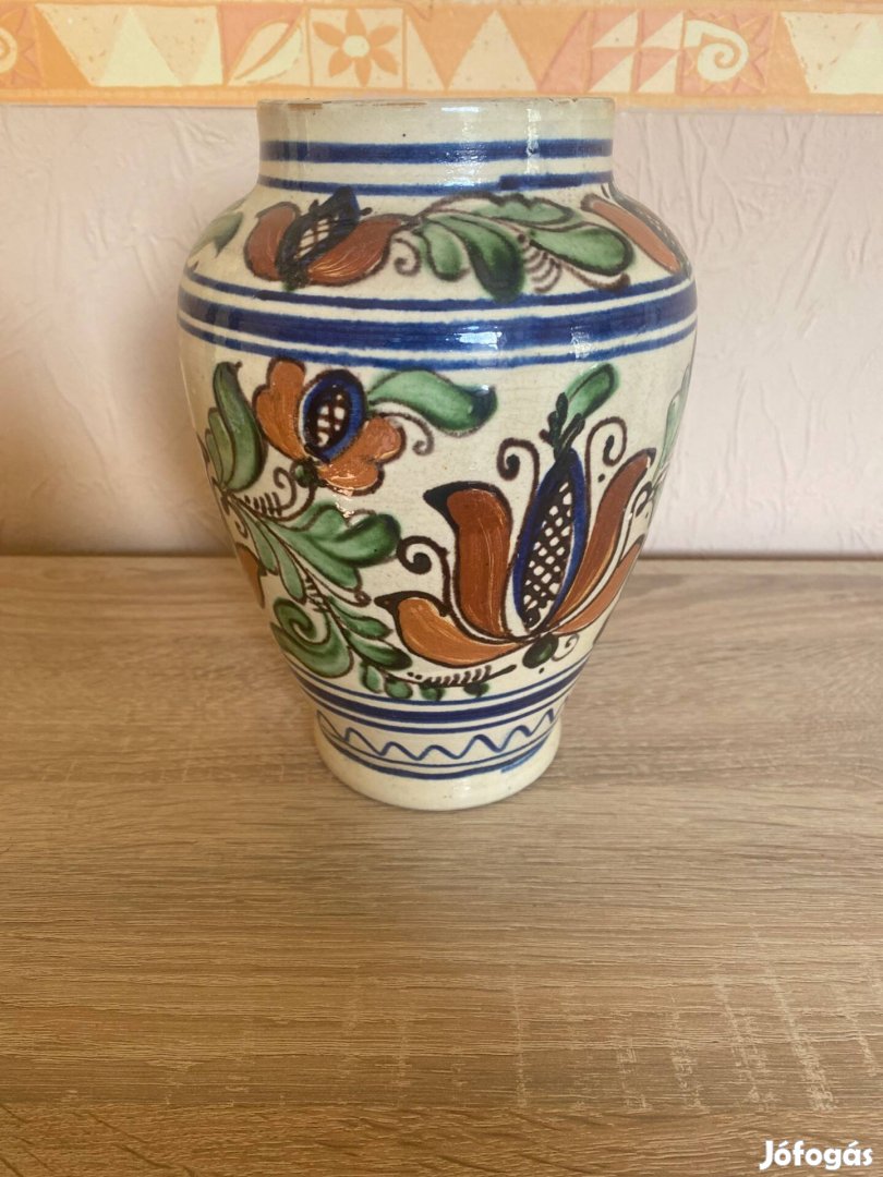 Eladó kézzel festett korondi kerámia váza Kun Mihály munkája