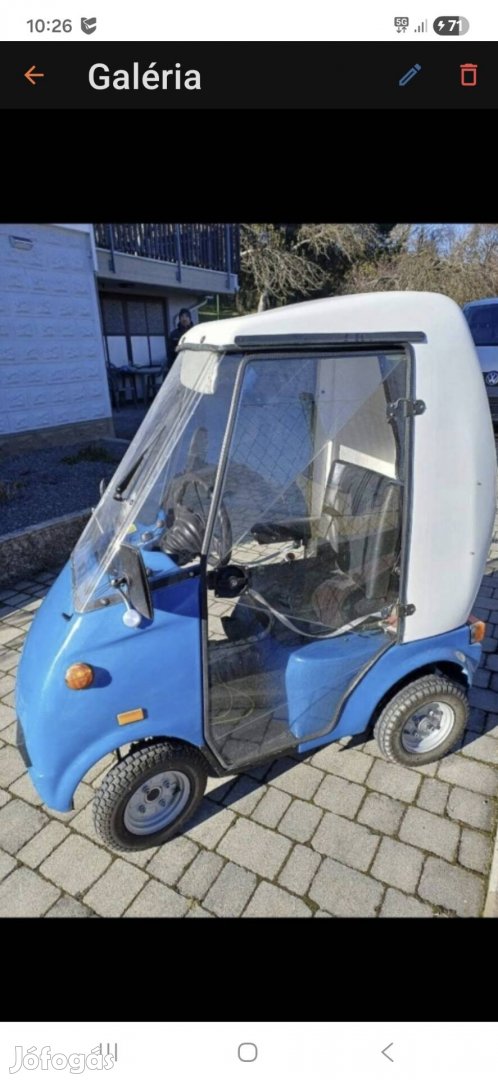 Graf-carello elektromos kisjármű,Két sebesség előre egy hátra,fűtés elektromos űlésbeállítás.Az ajtók nyáron levehetők .