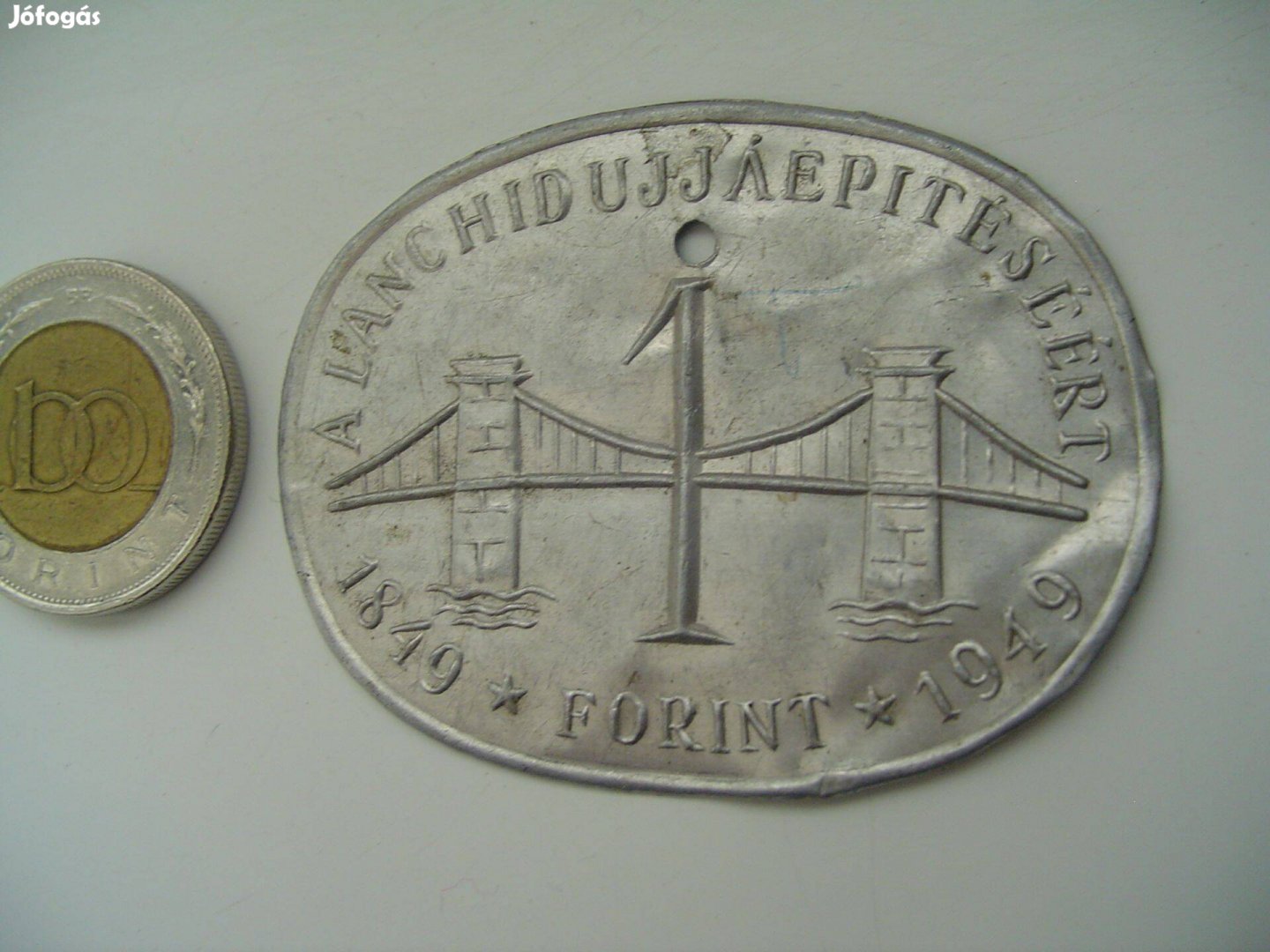 Eredeti 1 Forint "Lánchíd Újjáépítésére" 1949-es kiadású /1849-1949/ eredeti db