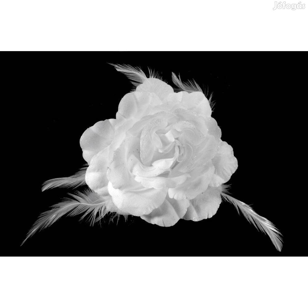 Ez a tollakkal díszített rózsa csodaszép kiegészítője lehet a menyasszonyok, koszorúslányok öltözékének.