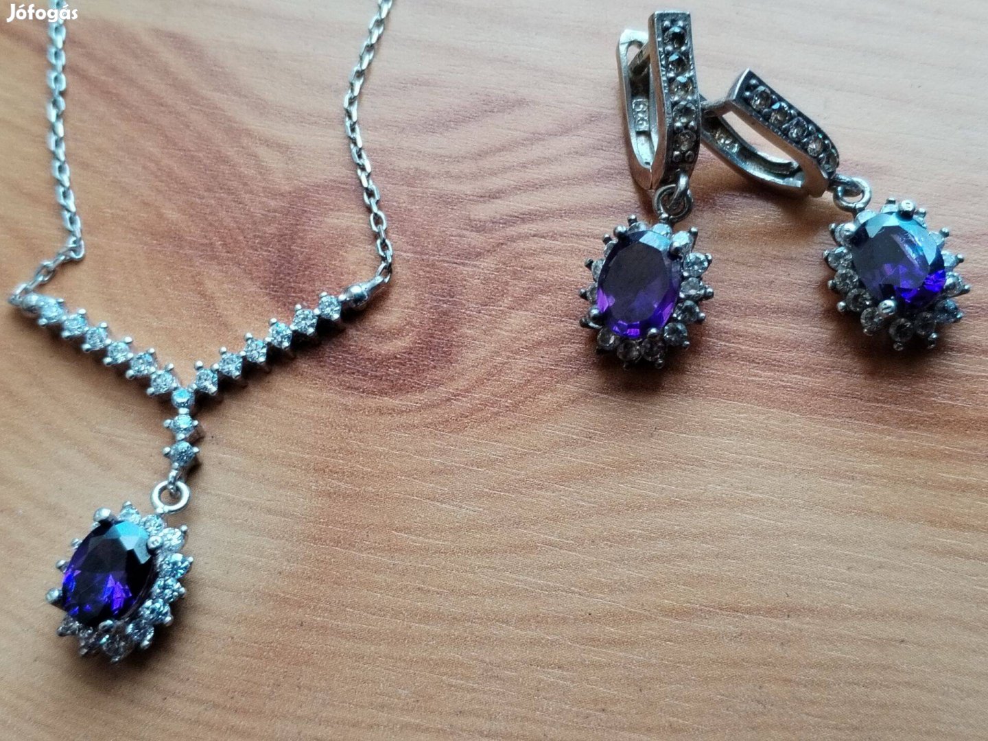 Ezüst fülbevaló pár csiszolt kék kövel Ezüst jelzett nyaklánc eladó