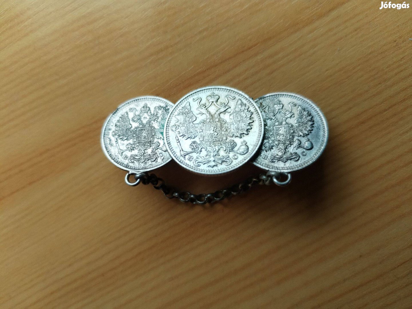 Ezüst kopejkákból készült Kitűző kisláncal Cári darabokból