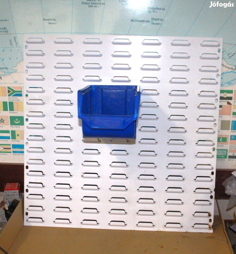 Fémből készült, falra szerelhető tartó lemez.