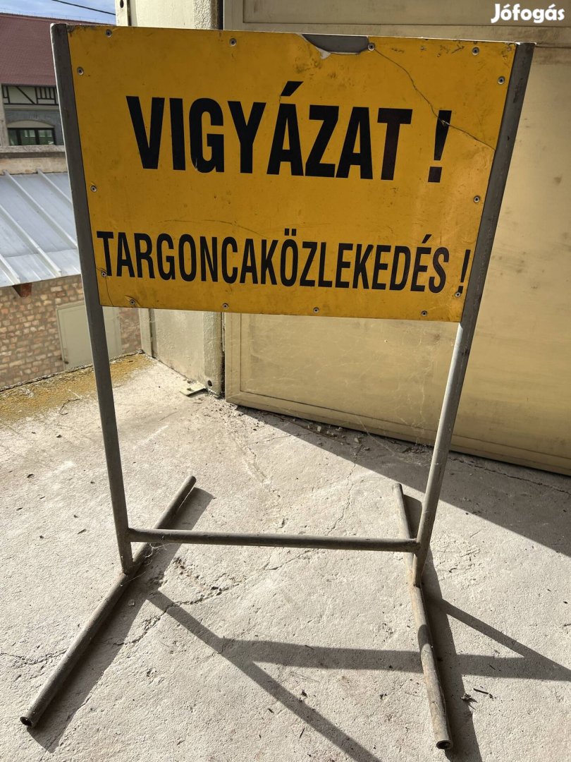 Fém állványon Targonca közlekedésre figyelmeztető tábla eladó