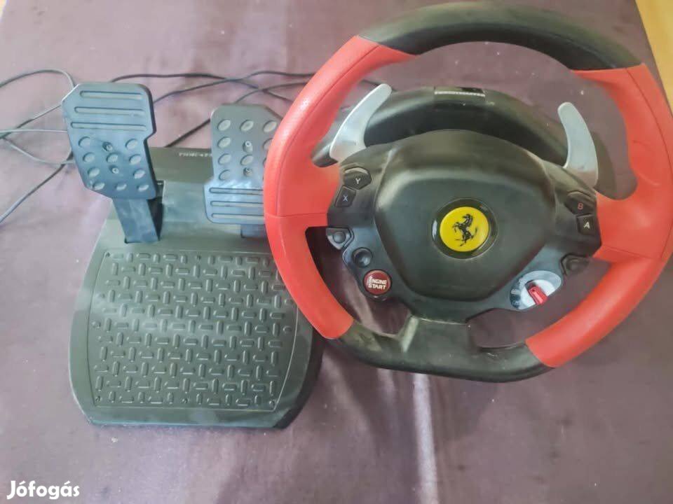 Thrustmaster Ferrari 458 Spider versenykormány és pedálszett látható.