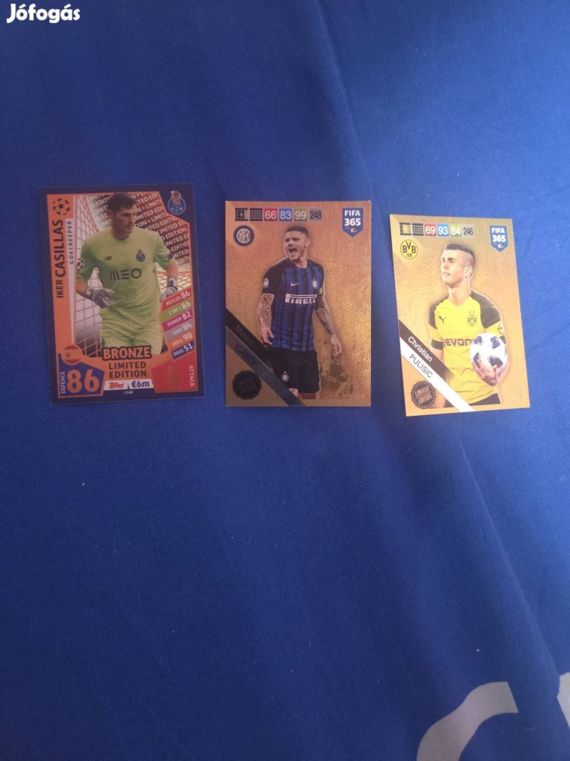 Eladóvá váltak limitált kiadású focis kártyáim. Összesen 3 db kártya. Panini-n kívül van még benne 1 db Match Attax-os kártya is.