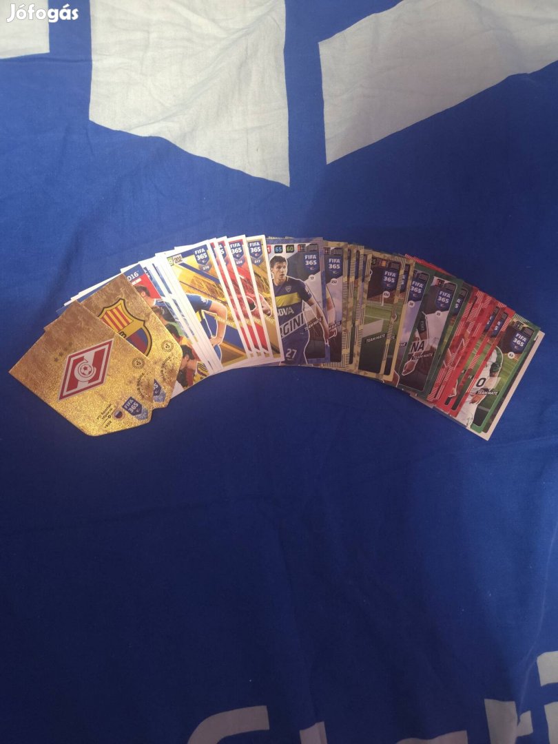 Eladóvá váltak olyan focis kártyáim, amelyekből több van. 34 db kártya van összesen ebben a csomagban, amelyből 31 db sima, 1 db speciális kártya, és 2 db címeres kártya. Kérés esetén szívesen küldök képeket még!