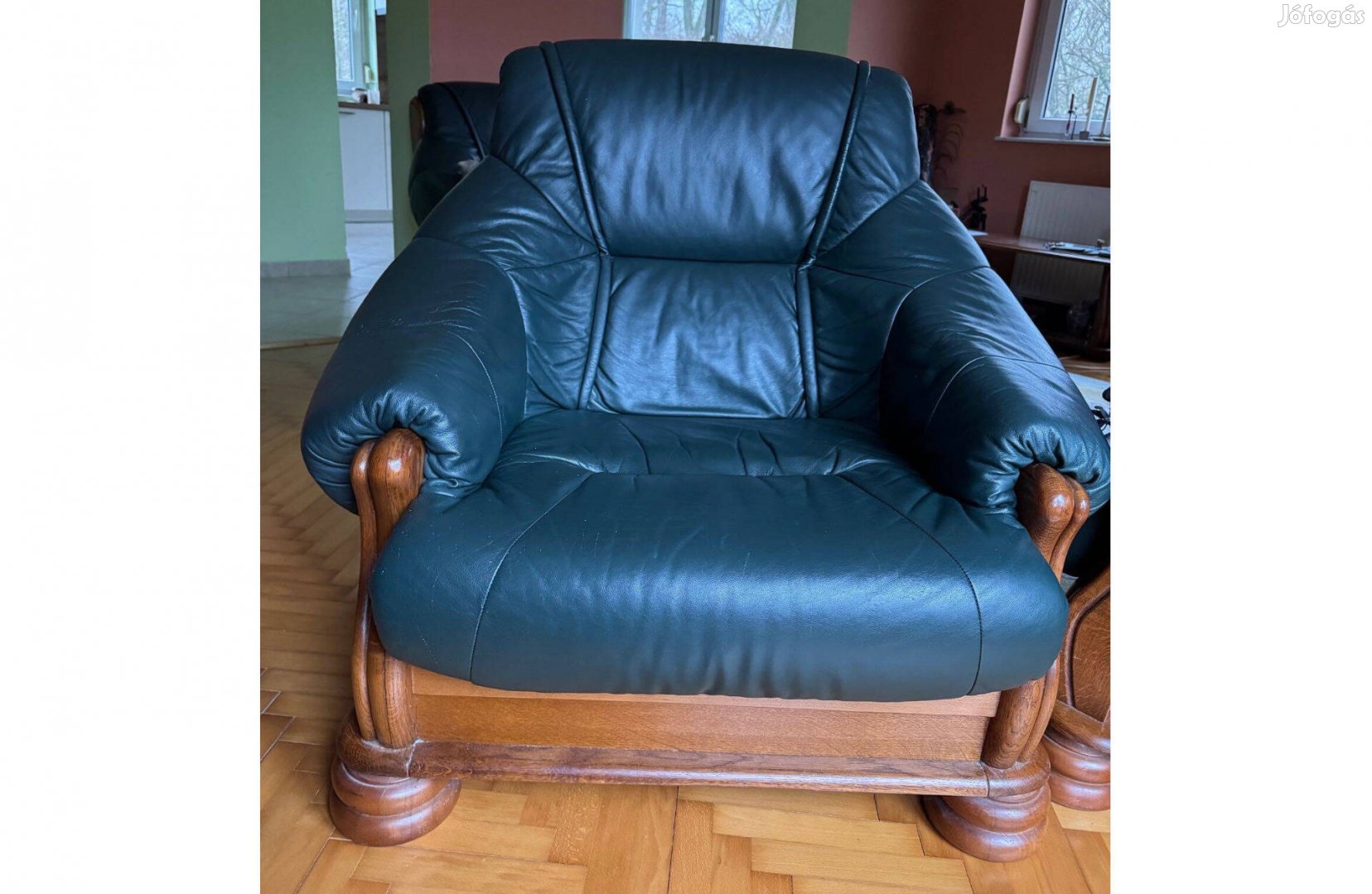 Eladó egy valódi bőrből készült masszív fotel. Igény esetén garnitúraként is kínálom, megegyezés szerinti áron kapható hozzá egy kétrészes és egy háromrészes kanapé, továbbá egy asztal is.