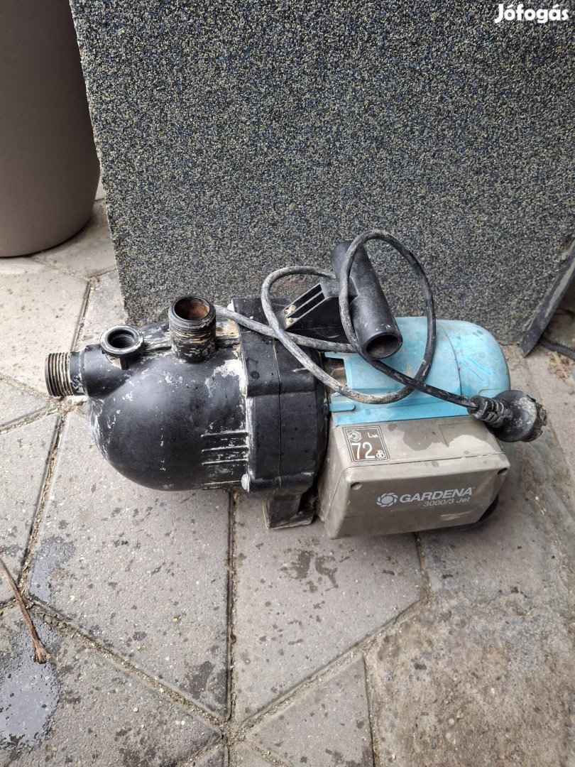 Gardena 3000/3 víz szivattyú. Szépen csendben működik, de sajnos megrepedt a műanyag ház felül ( egyik képen mutatom hol), és ereszti a vizet. Adatok a képeken. Alkatrésznek, javítani, stb. Csere lehet.
