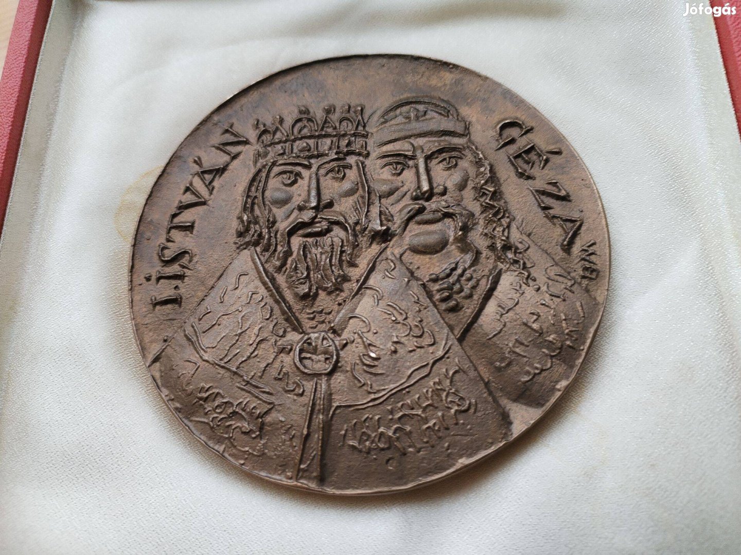Géza Fejedelem István Király Ritka Borsos Miklós érem Esztergom ezer éves Ritka bronz érem 10 cm átmérőjű 1973-as kiadás