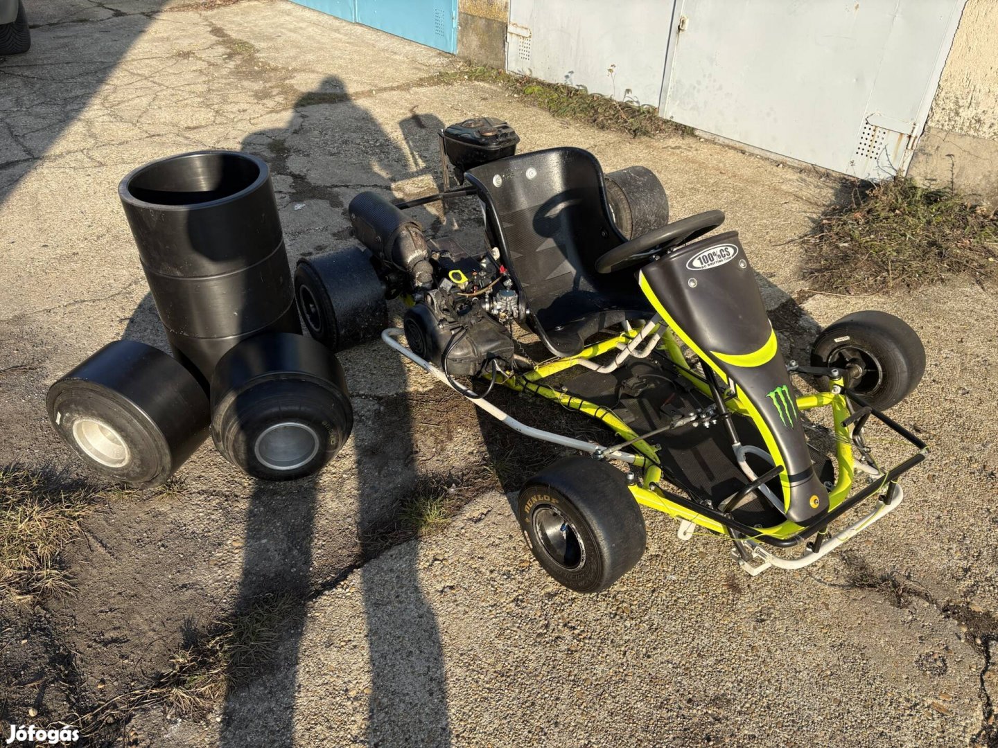 Eladó a képeken látható Pénzes gokart 50ccm-es kétütemű Yamaha Jog motorral szerelve. A járművet driftelésre használtuk a hátsókerekekre rakott Kpe csövek segítségével. A gokart kormányszöge a gyári állapotához képest meg lett növelve. Az ár részét képezi 6db centírozott új állapotú cső is. Személyes átvételre Tatabányán van lehetőség.