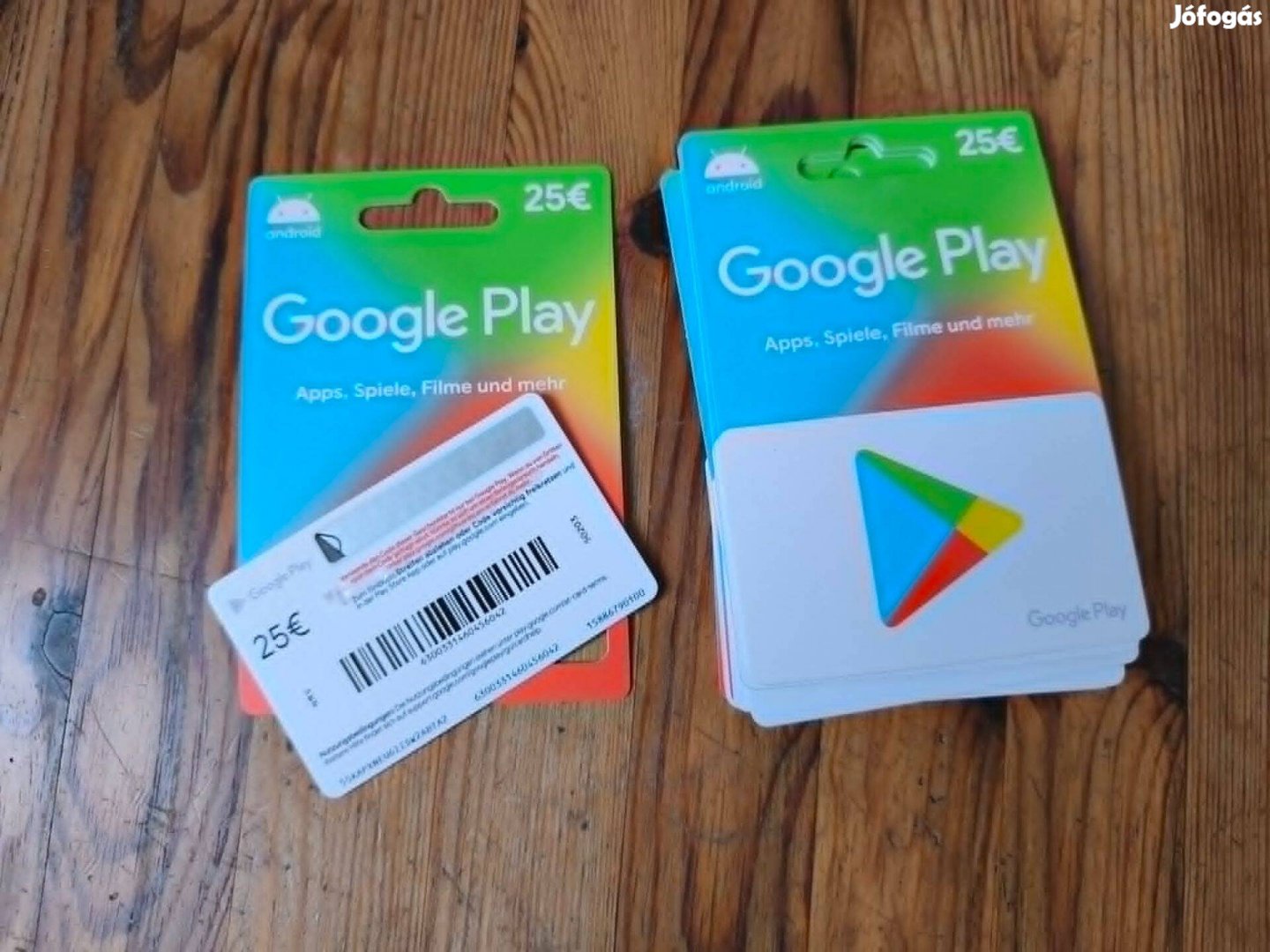 Eladó 10 db lekaparatlan Google Play ajándékkártya (25 /db névérték).