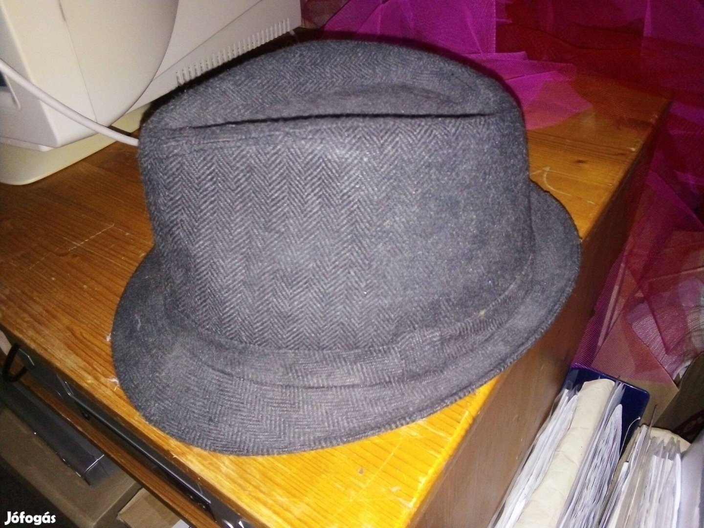 A képeken látható állapotban eladó egy XL-es (60 cm) méretű halszálkás vagy fenyőágas kalap.