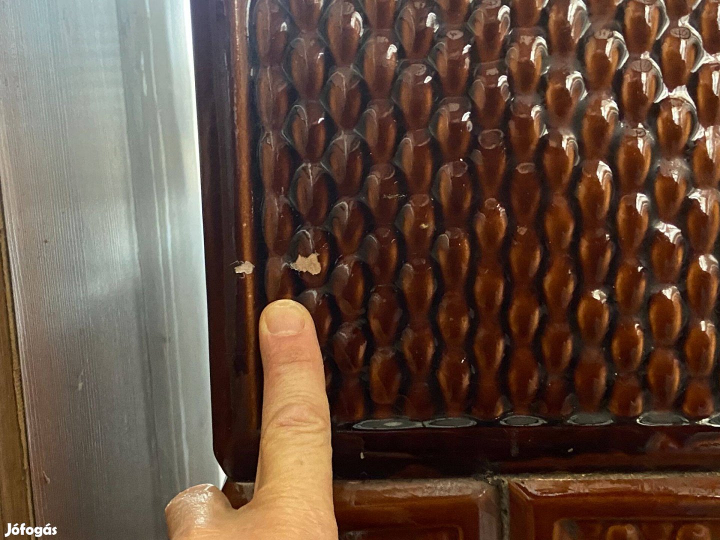 Használt. Felül az egyik csempe repedt (kép). A felső ajtó füle le van törve (kép) Nehéz, van benne anyag (négy emberes).