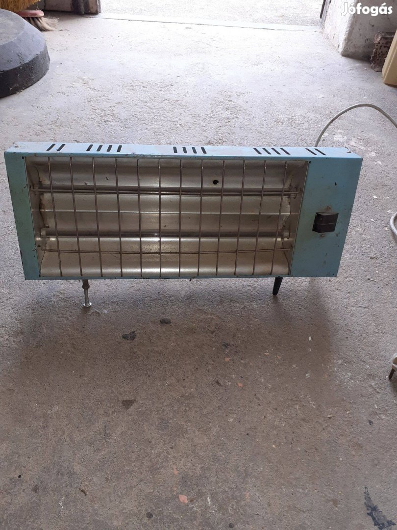 Alig használt, szovjet retró, fém házas hősugárzó, 1000W-os, két fűtőszálas, egy fűtőszálra is kapcsolható, egyik lábát csavarral pótoltam, működik.