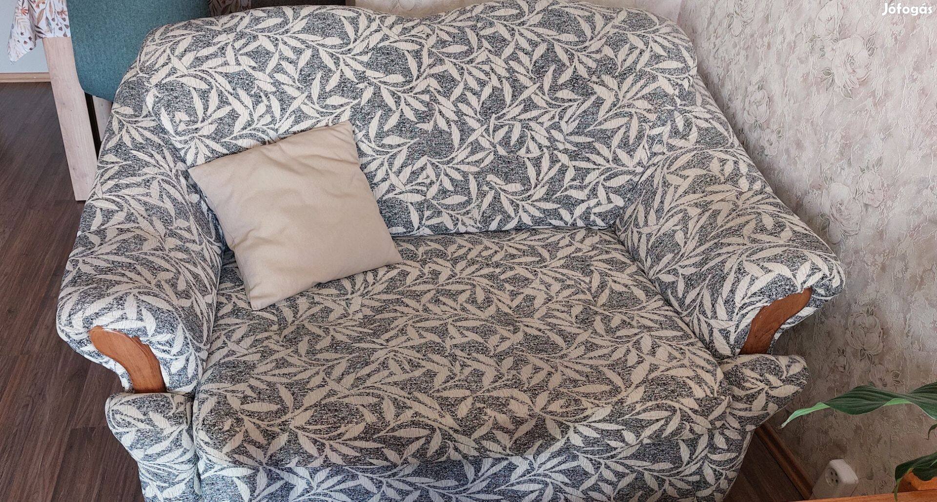 Mindkét darab szürkés alapon fehér levél mintás huzattal van borítva. A karfáknál van egy kis fa hatás, de ez nem jelenik meg máshol.