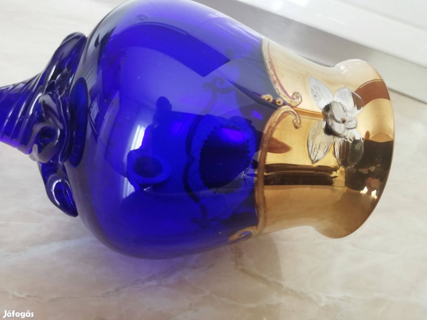 Kék mintás nagyon szép aranyozott díszpohár régi db