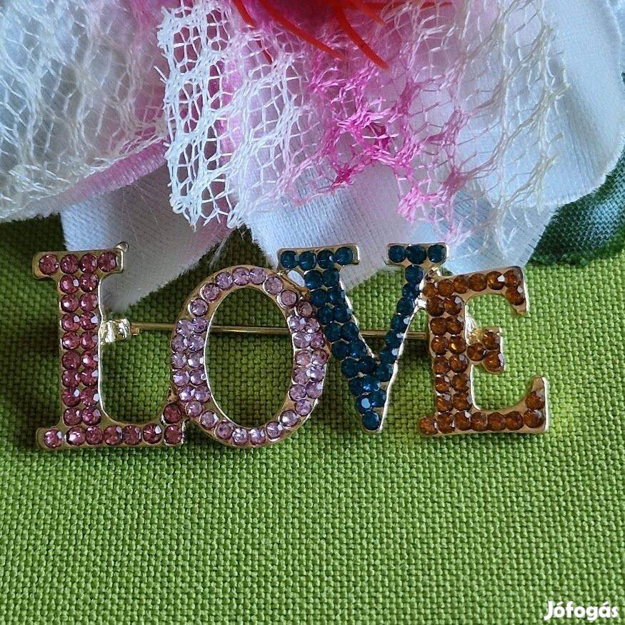 Kitűző, bross BRO213 - Strasszköves LOVE 45x18mm