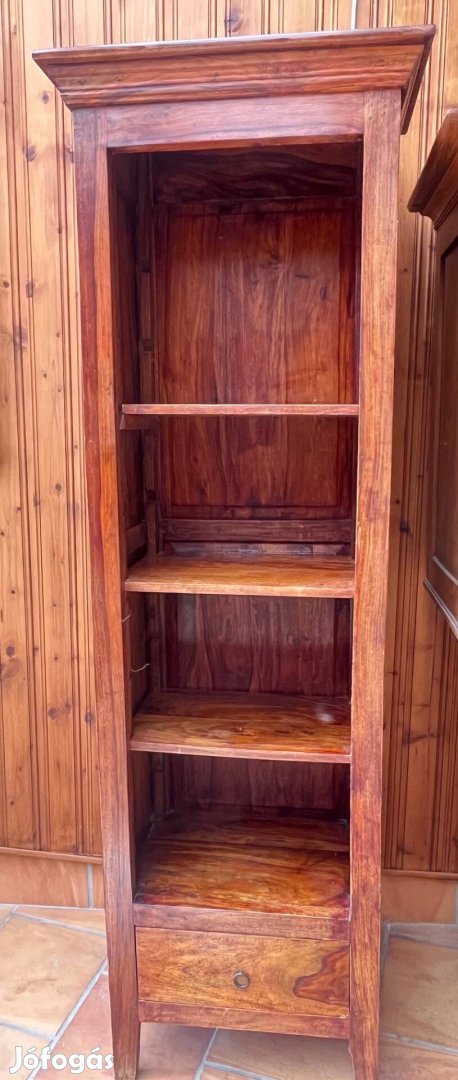 Ez egy tömör indiai rózsafából (sheesham) készült, fiókkal rendelkező polcos könyvszekrény.