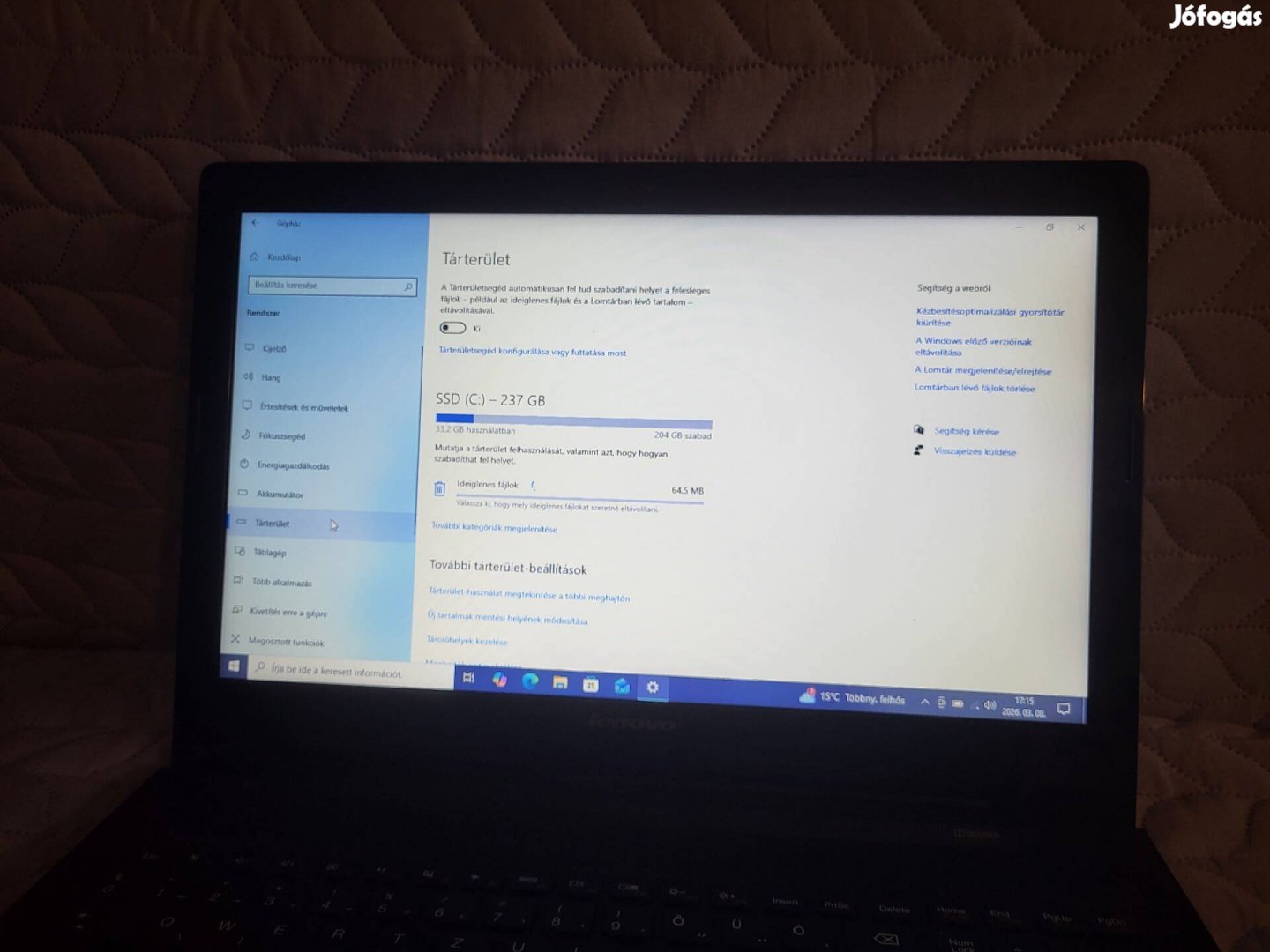 Eladó kihasználatlanság miatt Lenovo Leptop, hibátlanul működik, nincs rajta sérülés, alig használt állapotban. 237GB belső tárhely.