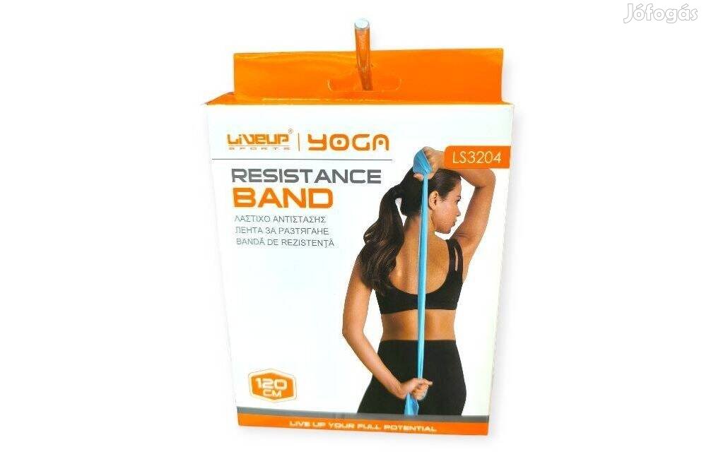 Liveup jóga szalag türkizkék 120x15 cm, közepes erősségű fitnesz sza