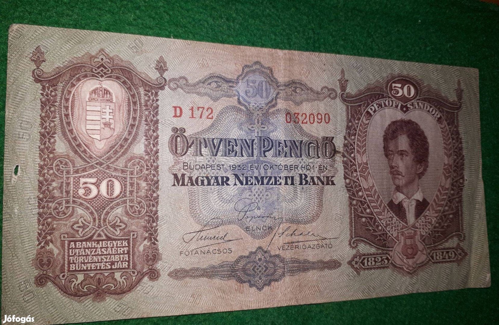 Magar Nemzeti BANK 50 Pengő 1932 Forgalomban volt.