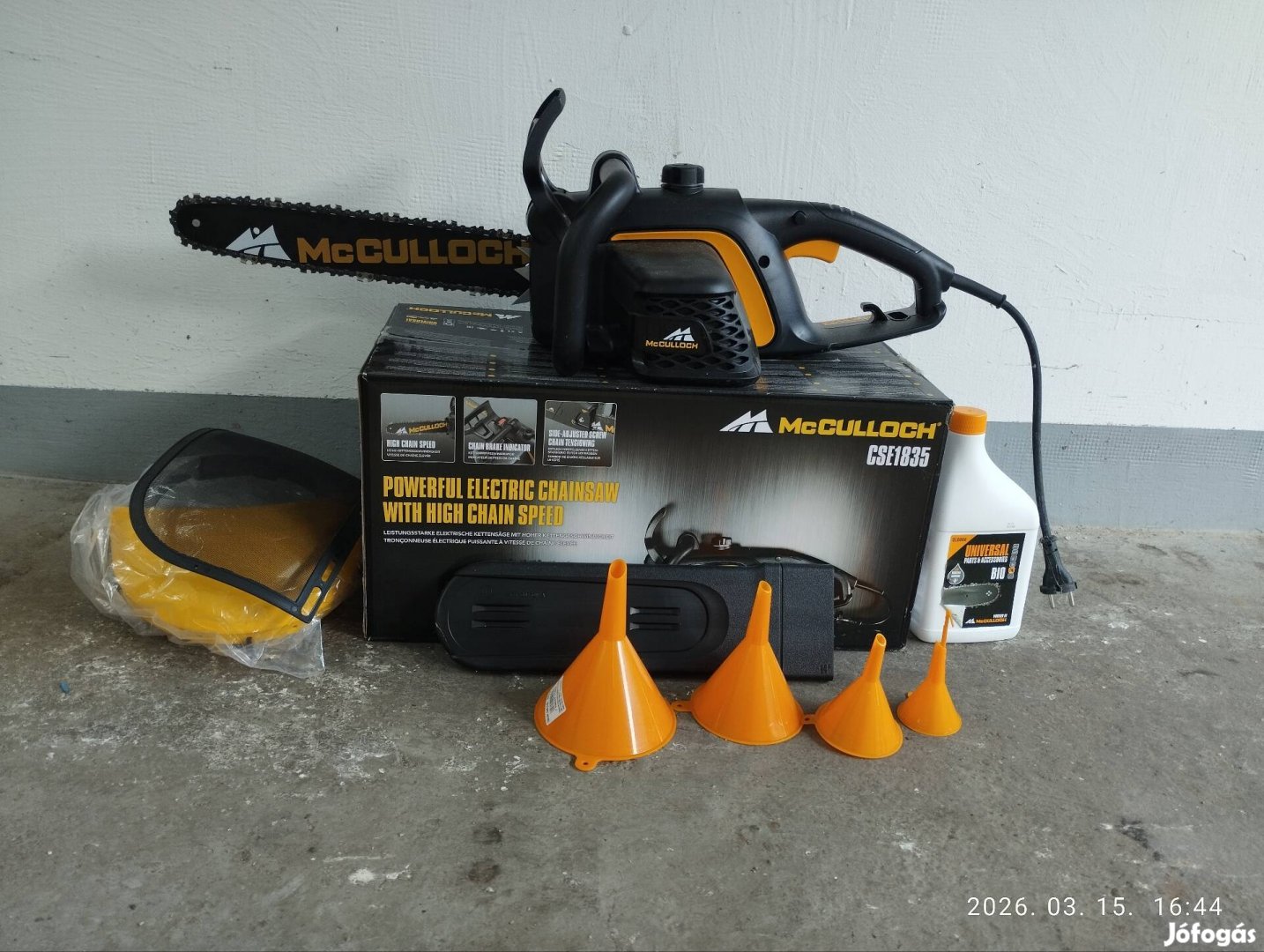 Eladó a képen látható Mcculloch CSE1835 elektromos láncfűrész. Használva sosem volt. Jár hozzá munkavédelmi álarc, 1 liter olaj, tölcsérkészlet. Ház körüli teendőkre tökéletes.
