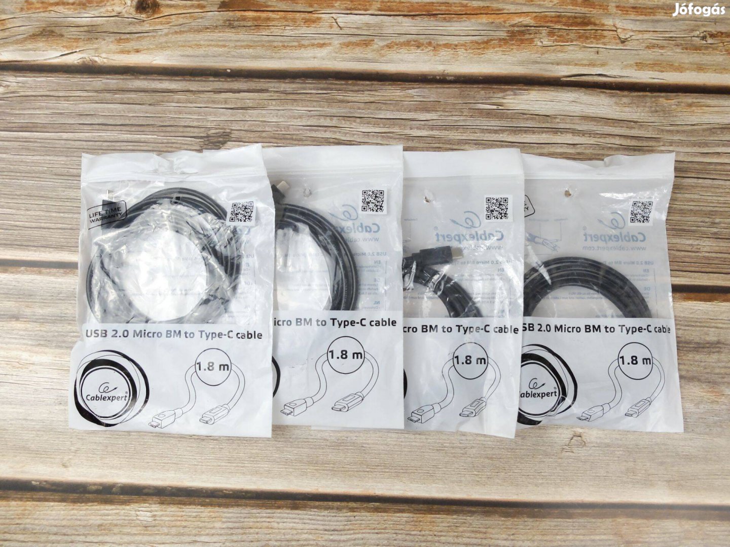 Microusb 2.0 USB C adatkábel 1,8m fekete Új!