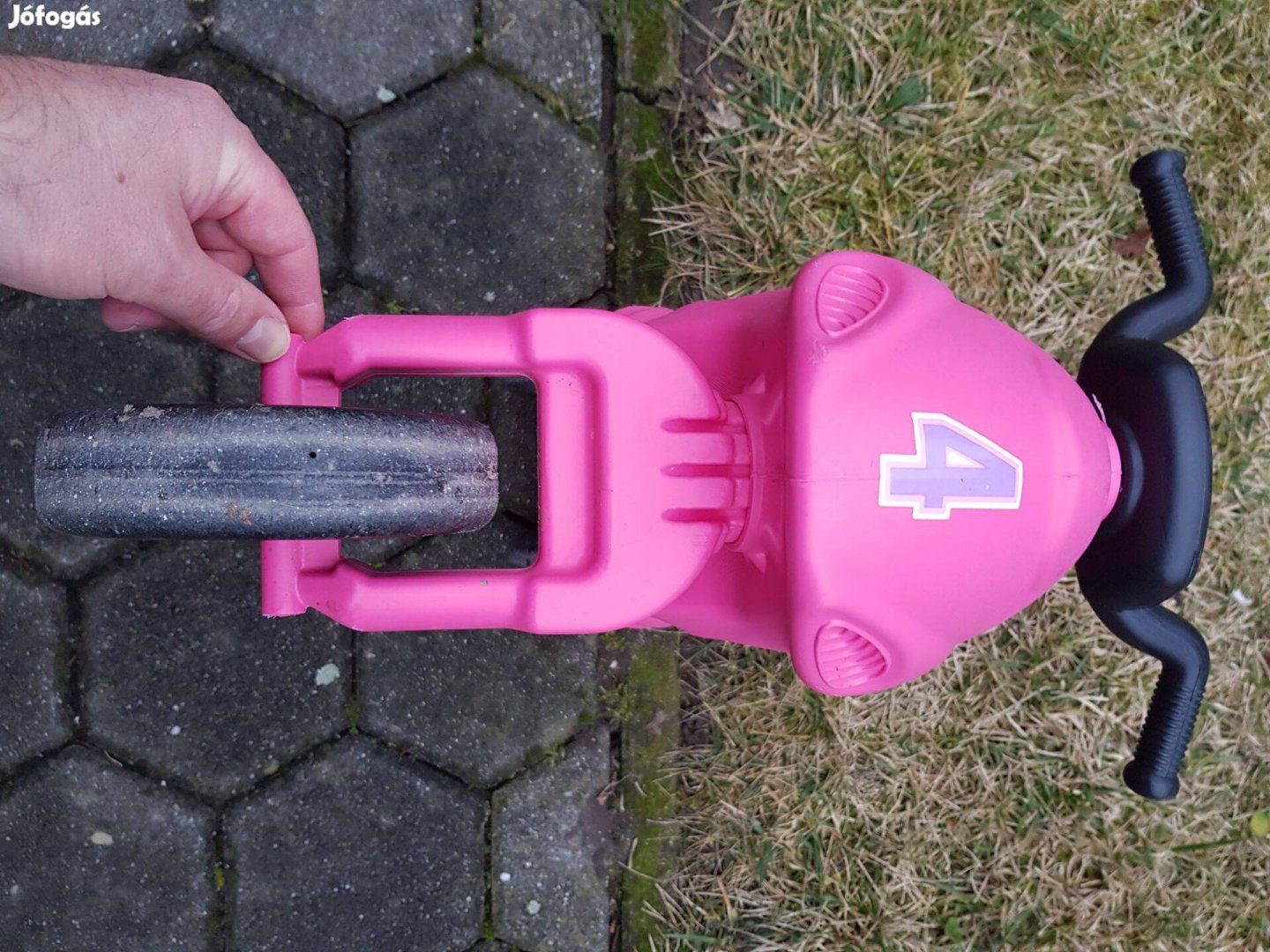 Eladó egy rózsaszín, műanyag kis motor. Használatból eredő karcok láthatóak, de jó állapotban van a járgány.