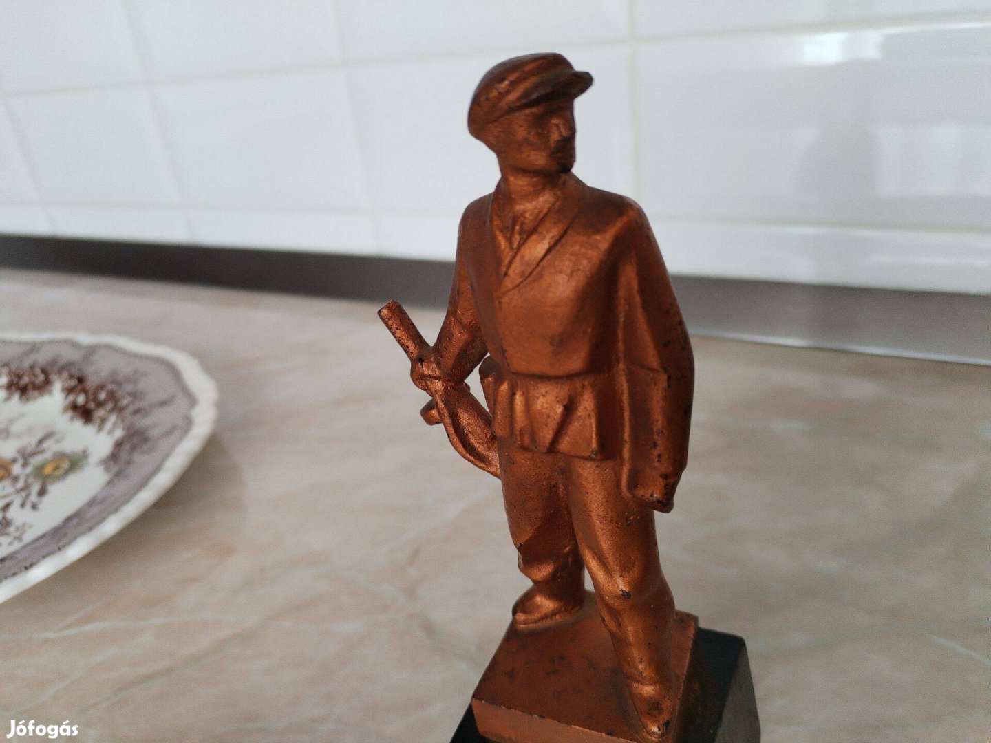 Munkásőr szobor fa talpon