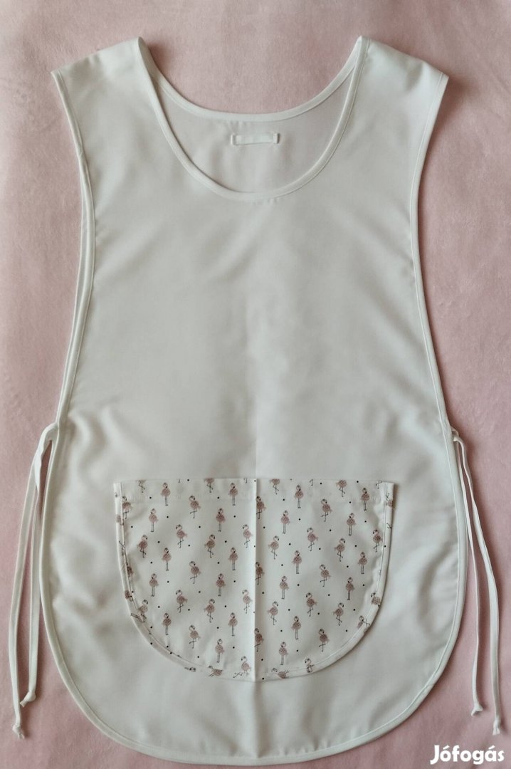 Női fehér lapköpeny,mintás zsebbel, ovis, munkaruha