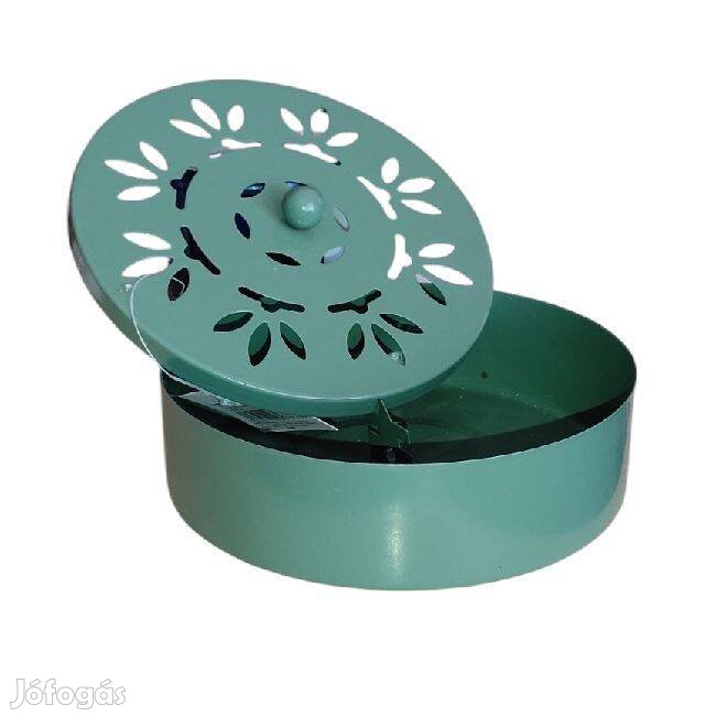Olívazöld fém szúnyogriasztó spiráltartó kültéri használatra, 14,5x4