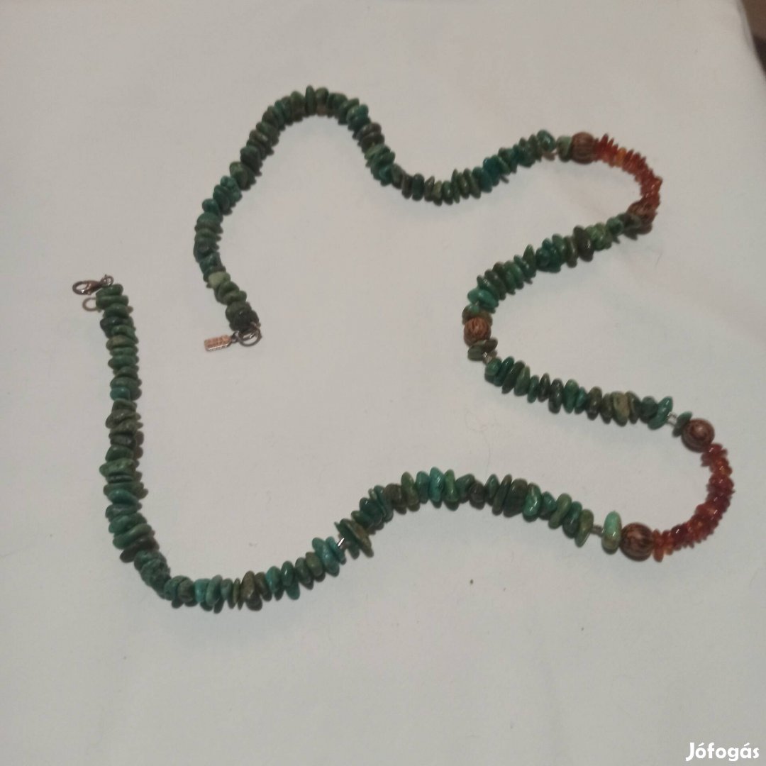 Türkiz ,borostyán ,925-ös(sterling) ezüst , 84.cm hosszú, eredeti peyote bird..